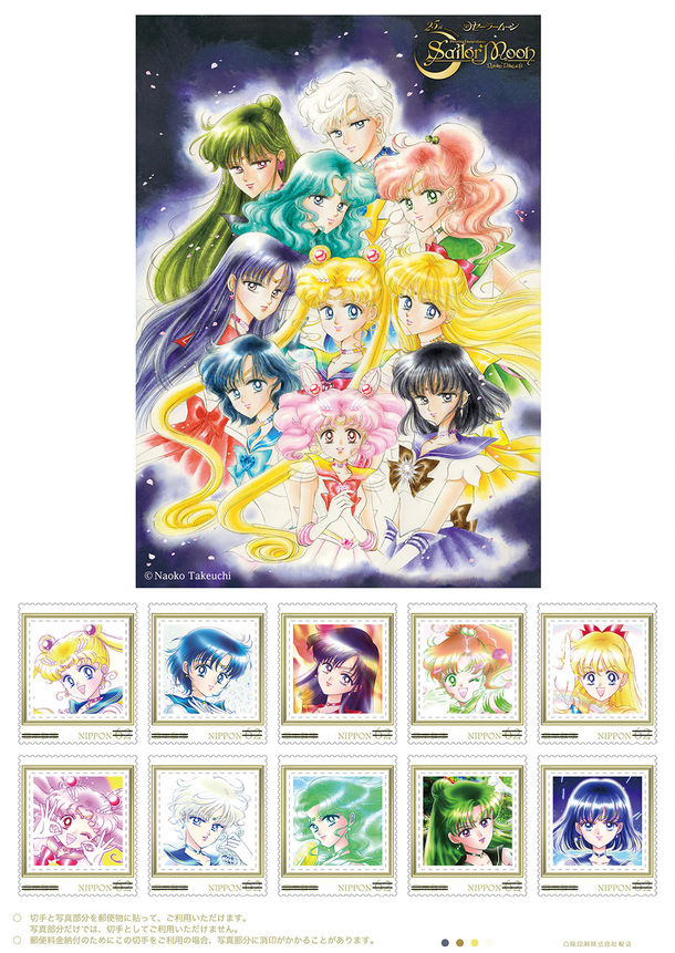 武内直子が厳選した「セーラームーン」原画が切手シートに、自筆メッセージも
