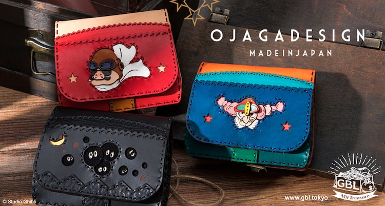 レザーブランド・OJAGA DESIGNとのコラボアイテム第2弾としてラインナップされたこれらのアイテム。カラフルな牛革を使った立体的なデザインと、ハンドステッチの温もりある風合いが特徴だ。「天空の城ラピュタ」のドーラの服装にちなんだブルーを基調とする「ドーラ」、「となりのトトロ」に登場するマックロクロスケをモチーフにオールブラックで仕上げた「クロスケいっぱい」、「紅の豚」のポルコならではのレッドを基調に、中面をイタリアンカラーでまとめた「ポルコ」が揃えられた。