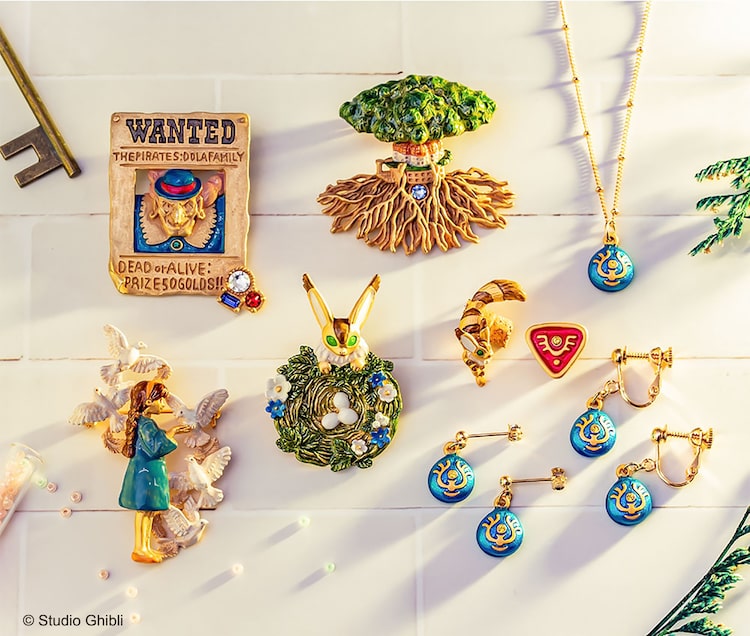 アクセサリーブランド・Palnart Pocとコラボしたアクセサリーシリーズには、シータと白い鳩をかたどった「天空の城ラピュタ ブローチ シータと白い鳩」などのブローチ4種類のほか、飛行石、キツネリス、ラピュタ王家の紋章をモチーフにしたピアス・イヤリングなどをラインナップ。優しい色合いでナチュラルな雰囲気のアクセサリーが揃えられた。各アイテムはDonguri Closetラゾーナ川崎プラザ店ほか、どんぐり共和国のDonguri Closet取扱店舗などで販売される。