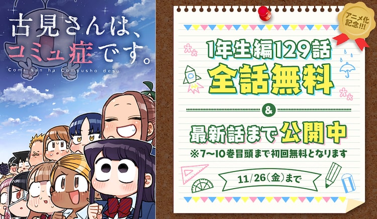 「古見さんは、コミュ症です。」1年生編全話無料公開の告知画像。