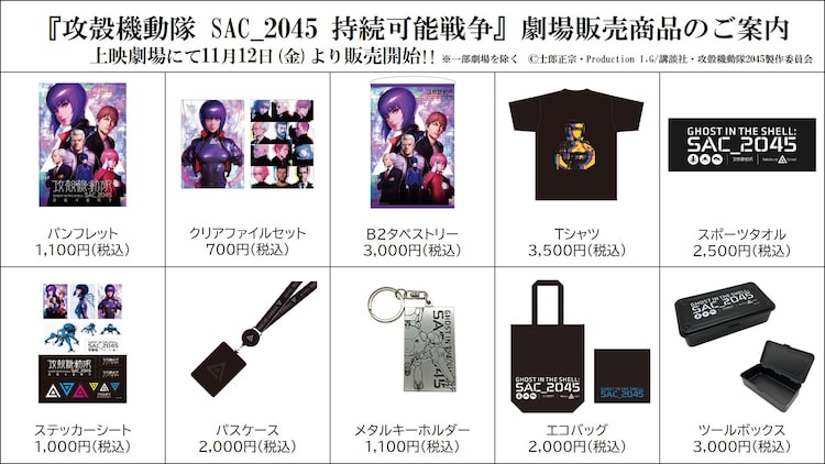 士郎正宗原作による劇場用長編アニメーション「攻殻機動隊 SAC_2045 持続可能戦争」の劇場販売グッズがお目見えした。
