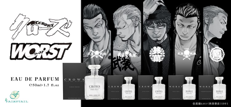 高橋ヒロシ「クローズ」「WORST」の登場キャラクターをイメージした香水が、フェアリーテイルから発売される。