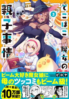 「でこぼこ魔女の親子事情」は幼い風貌の魔女・アリッサと、彼女が拾った人間の赤子が織りなすコメディ。赤子をビオラと名付け育てていたアリッサだったが、16年後、ビオラはプロポーション抜群の女性に成長し、周囲からビオラがアリッサの師匠であると勘違いされるほどになっていた。3巻では解剖が大好きなマッドドクター・キクラやアリッサを探す謎の男など個性豊かなキャラクターが登場し、アリッサたちとカオスな日常を過ごす。一部書店では3巻購入者には特典を配布しており、アニメイトでは複製ミニ色紙、とらのあな・メロンブックスでは4Pリーフレット、ゲーマーズではペーパー、COMICZIN・喜久屋書店・三洋堂書店・沖縄県のTSUTAYAではイラストカード、その他書店では共通のペーパーがもらえる。
