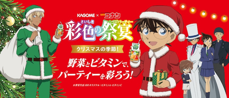 青山剛昌原作のアニメ「名探偵コナン」とカゴメによるコラボキャンペーン「彩色の祭宴(さいしきのベジパーティー)」の第2弾「クリスマス編」が、本日11月15日にスタートする。