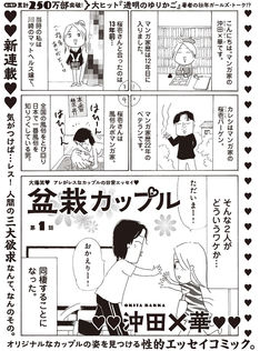 Read More本日5月18日発売のカジュアルファッションマガジン・Maybe! Vol.3(小学館)にて、沖田×華の新連載「盆栽カップル」がスタートした。 「盆栽カップル」は沖田と、その彼氏である桜壱バーゲンの“レス”な日常が描かれる…