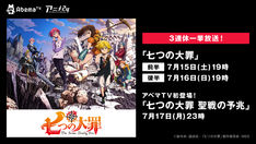 Read More鈴木央原作によるテレビアニメ「七つの大罪」と「七つの大罪 聖戦の予兆」が、AbemaTVのアニメ24チャンネルにて一挙配信される。 これは7月16日に東京・山野ホールにて行われるイベント「七つの大罪FES」の開催を記念し…