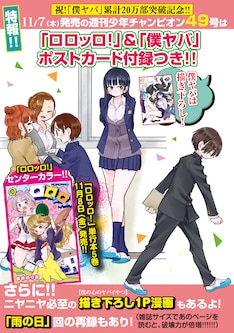 Read More本日11月7日発売の週刊少年チャンピオン49号(秋田書店)では、桜井のりお「ロロッロ!」と「僕の心のヤバイやつ」に関する企画が展開されている。 今号には2作のポストカードが付属。「僕の心のヤバイやつ」のイラストは描き下ろ…