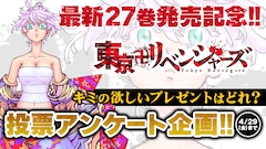Read More和久井健「東京卍リベンジャーズ」27巻の発売を記念した投票アンケート企画が、マガジンポケットの公式Twitter(@magapoke)にて実施中だ。 これは単行本27巻の表紙になった瓦城千咒のイラストを使用し、実現してほ…